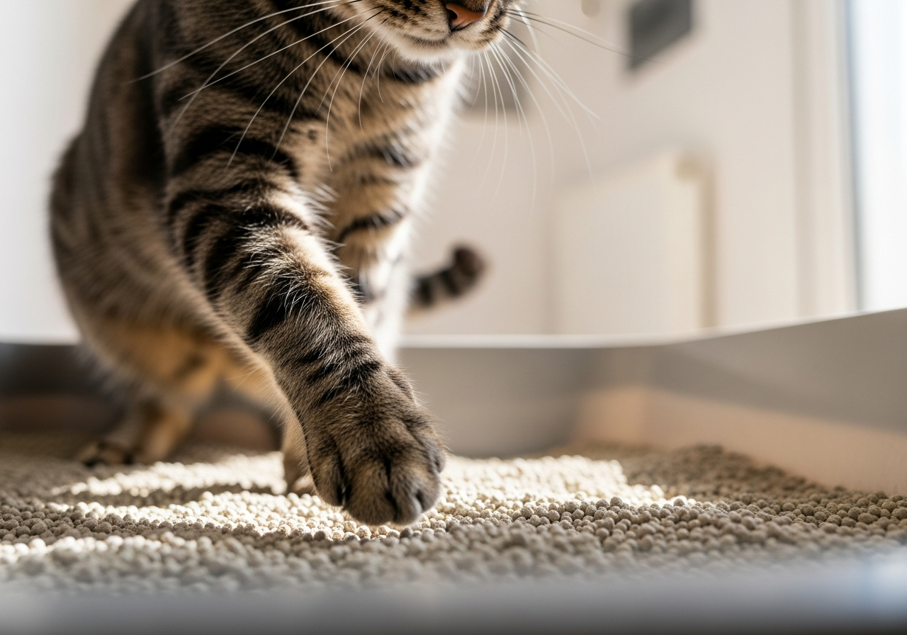 שלושה פתרונות מעשיים: שטיחון לכידה מחוץ לארגז, ארגז עם כניסה עליונה (top-entry), ובחירת חול בגרגור גדול יותר כמו קריסטל או טופו — שפחות נצמד לכפות.